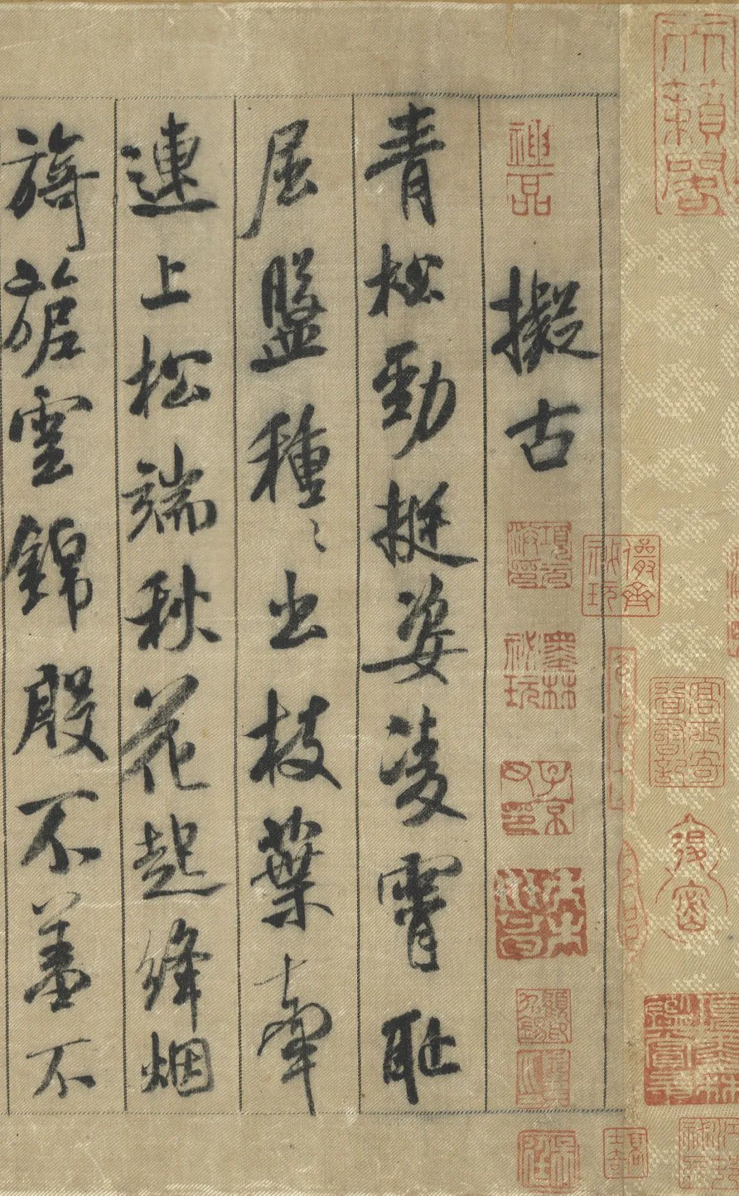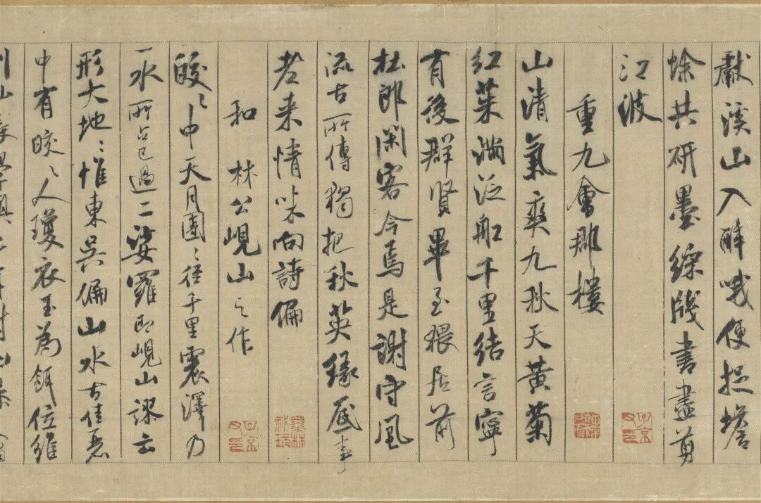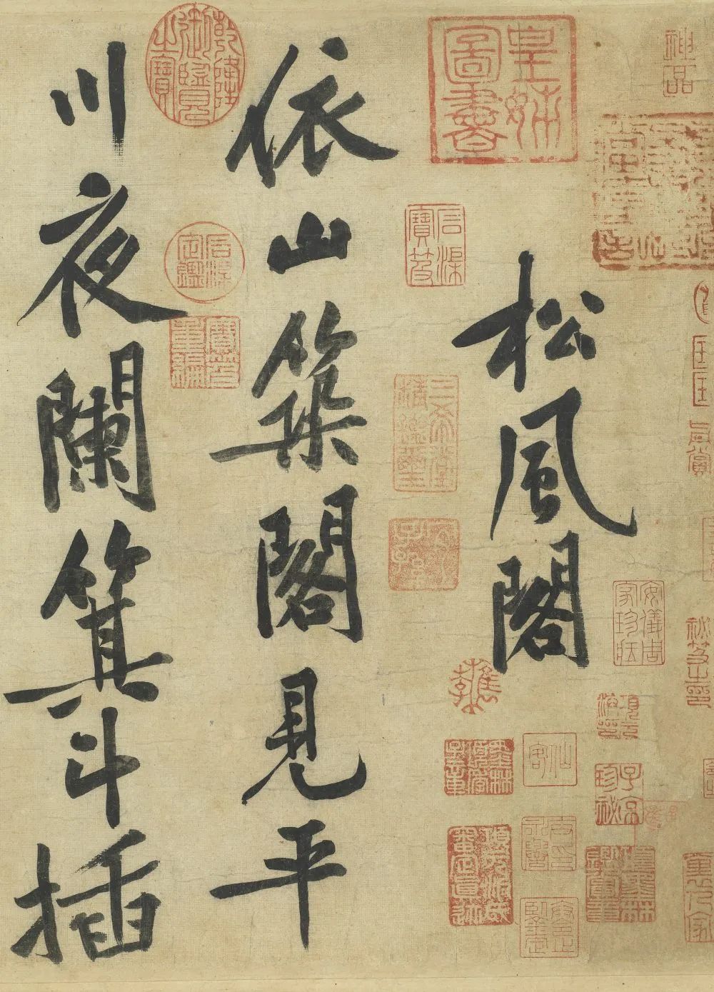 14件国宝中包括三件极为珍贵的限展国宝书画,分别为宋徽宗《文会图》、宋黄庭坚《自书松风阁诗》以及宋米芾《蜀素帖》;清单中有更多重磅国宝书画在列,包括宋王诜《渔村小雪图》、宋苏轼《书前赤壁赋》、宋李公麟《画丽人行》等等。