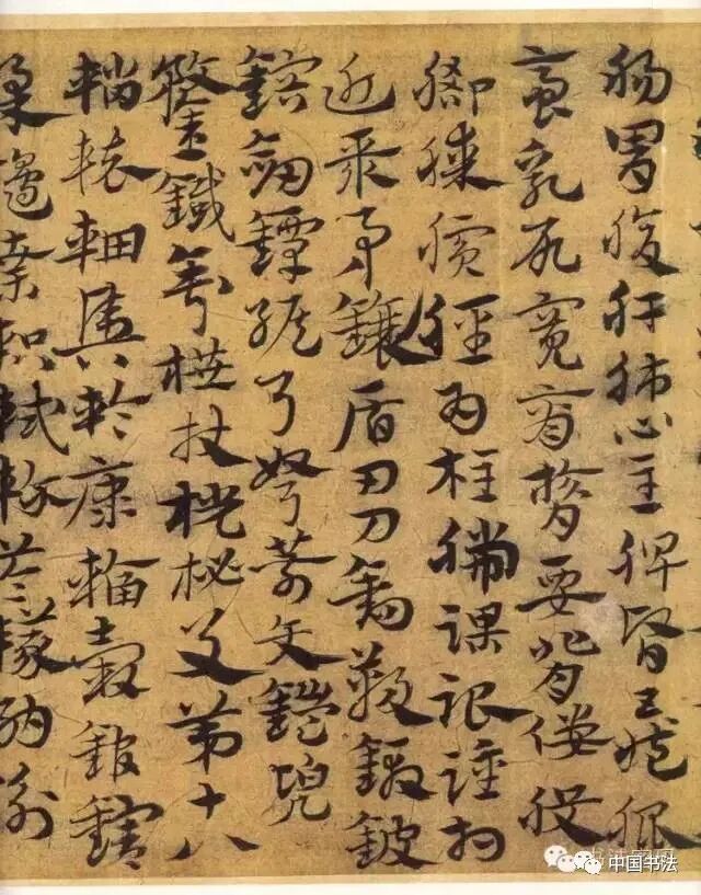 宋克《急就章》。宋克,字仲温,元末明初吴郡长洲人。因家居南宫里,自号南宫生。少任侠,杜门写字,日费千纸。尤工章草。所书《急就章》传世多种。今印行者,一为洪武庚戌本,一为洪武丁卯本,而以庚戌本最为完整亦最具影响。王颂馀在《明宋克章草急就章卷》一文中,称宋克“行笔劲健而气韵恰合,章法严密,首尾气势相连,顾盼生姿,笔画中的波脚与瘦劲的点画形成对比,特别是字里行间的穿插争让,给人以流动的感觉”。不足之处是比较纤巧,略失浑朴。宋克的章草传帖,还有《唐张怀曜论笔十法》与《书孙过庭书谱》等。此两帖均将章草与正楷相间书写,并不纯粹。