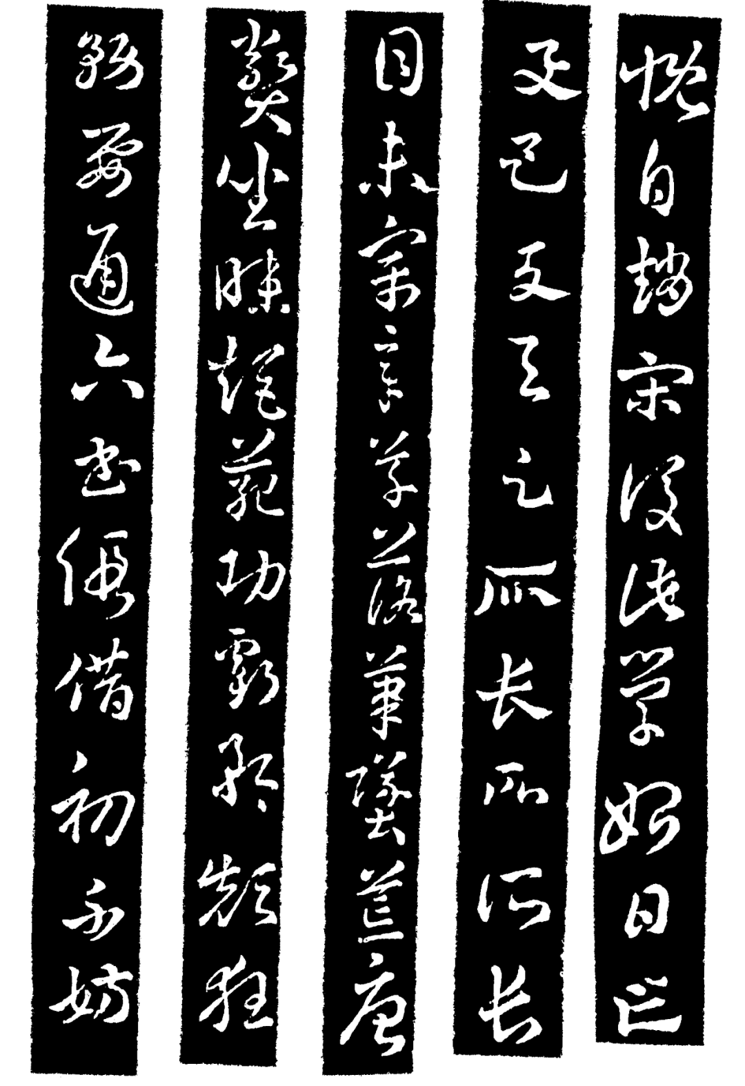 与撇的笔画相呼应,章草中竖的笔画基本上是秉承了收敛、安详、沉稳的运笔风格,为其他迅疾的运笔做了铺垫,因为有慢,所以彰显快,快与慢形成了艺术效果的对比。竖笔有的出锋,有的垂缩,其运笔显得比较从容不迫。请见下面5个例子: