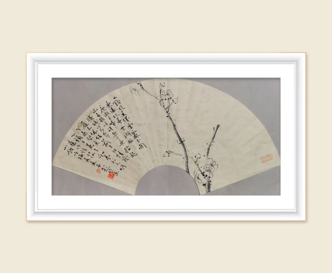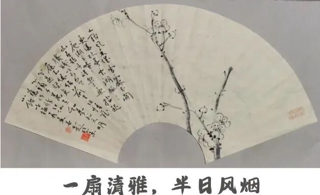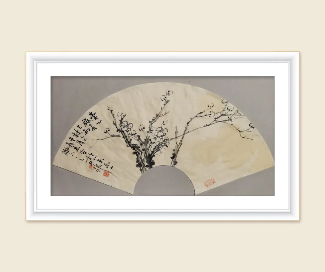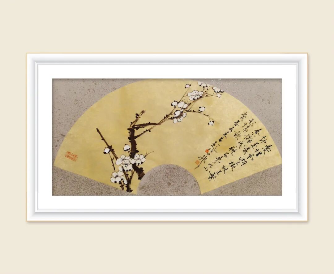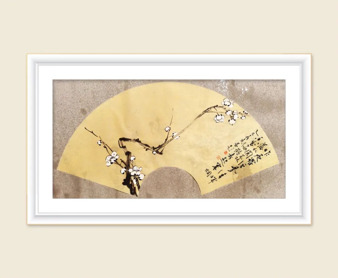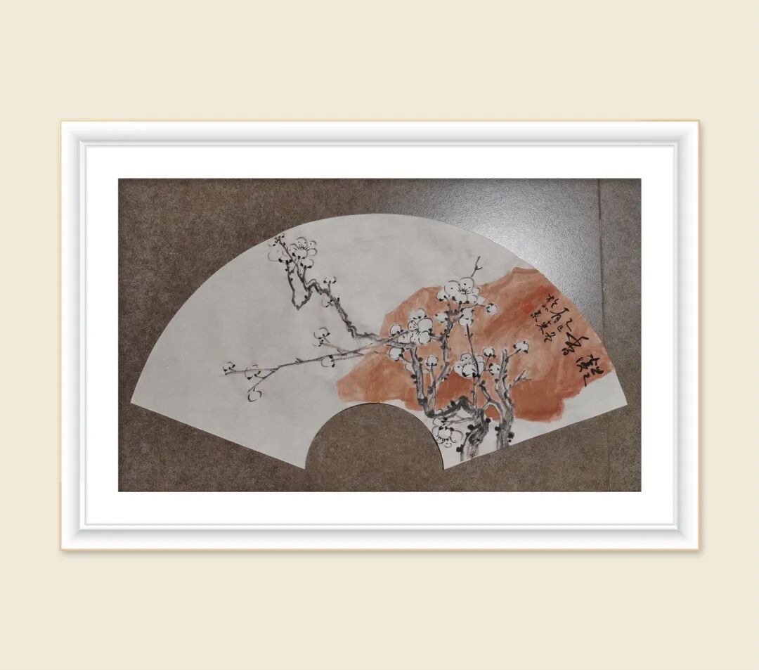 李有来老师的梅花扇面小品,一向以 简笔中见精神,留白中见天地 见长。