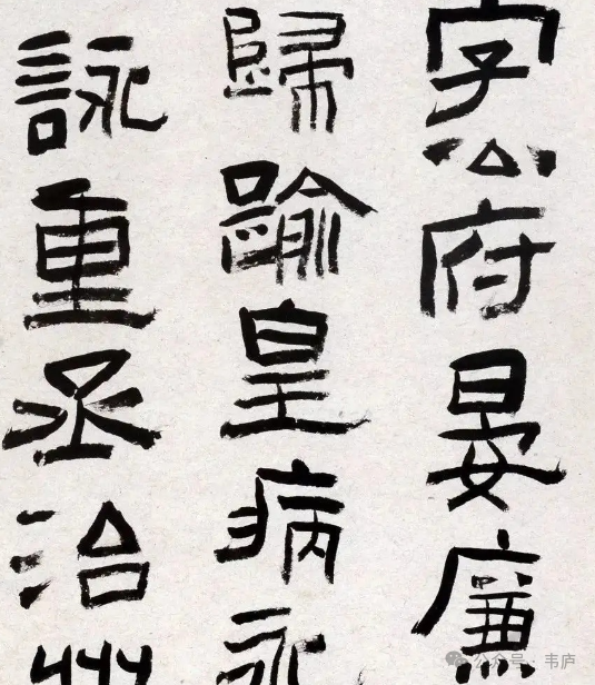从用笔上看,两碑各有侧重。《鲜于璜碑》用笔更为凝重浑厚,笔画敦厚稳重,没有刻意雕琢之感,收放非常明显。《张迁碑》用笔方折宽厚,转角方圆兼备,笔画遒劲有力,收放相较鲜于璜不是那么明显,内部空间更具动感和变化。
