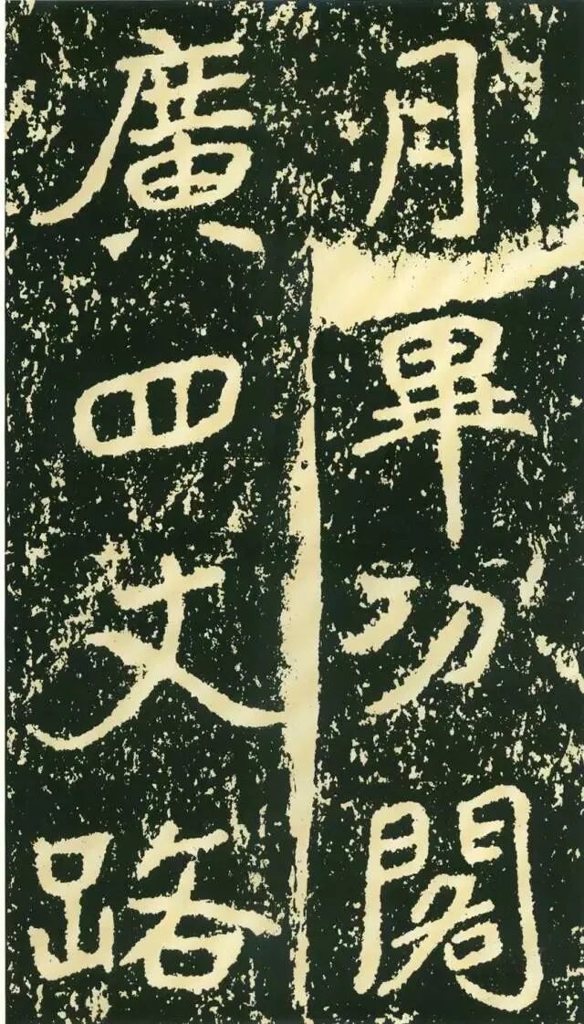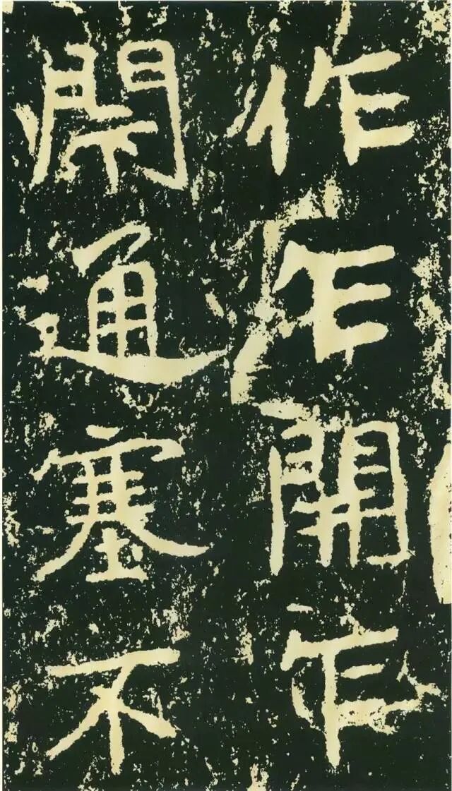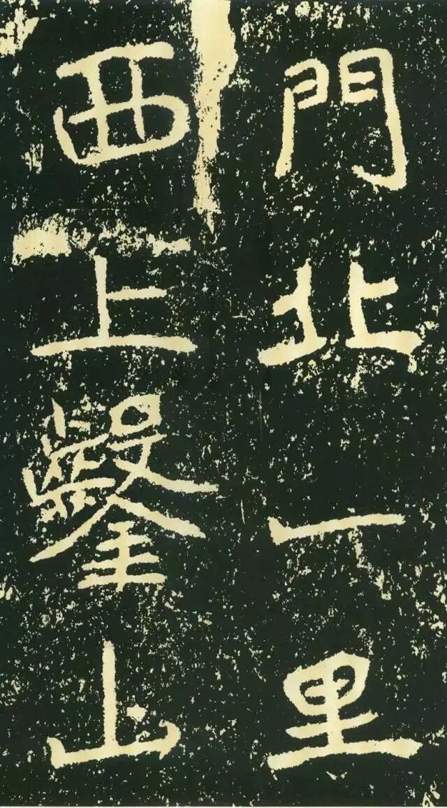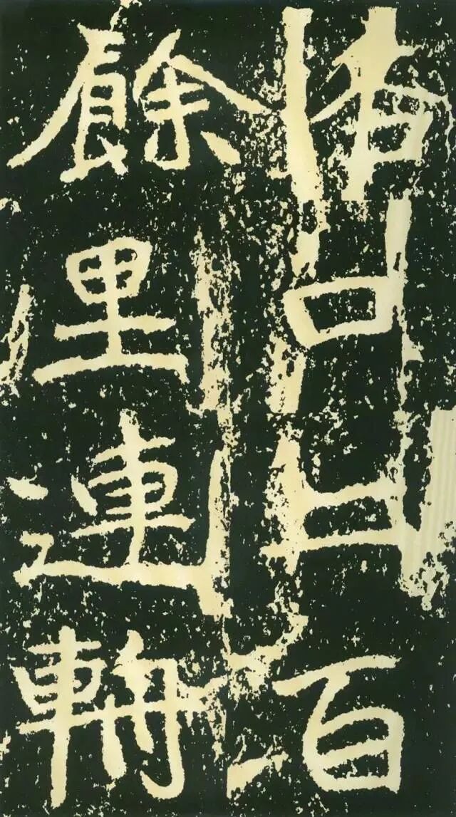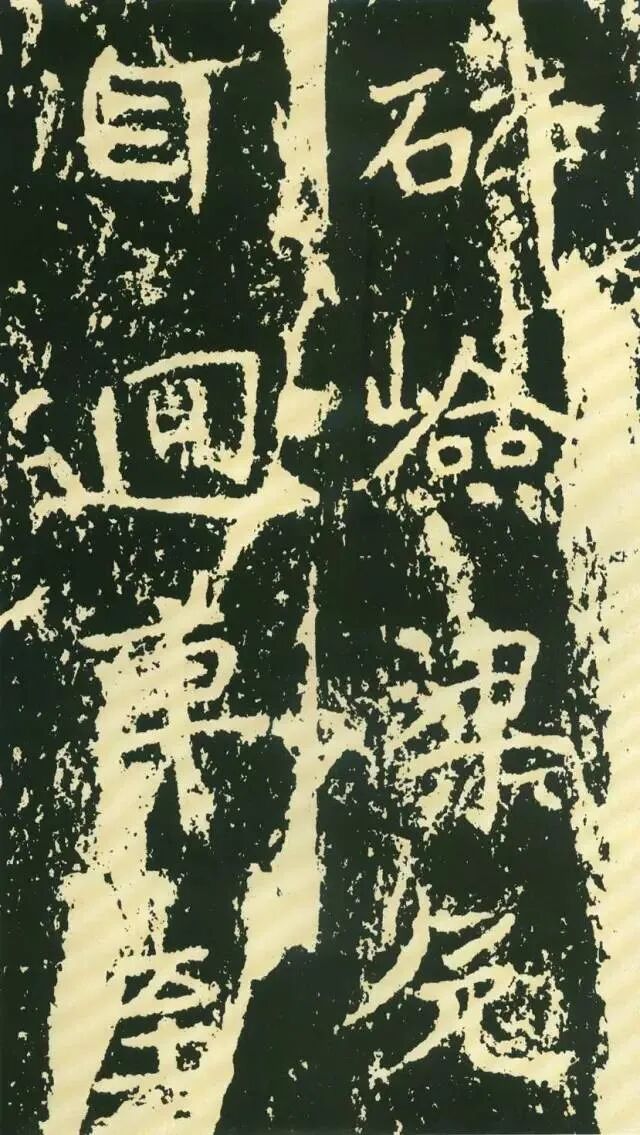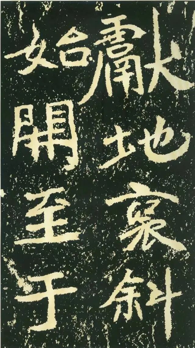 作为摩崖书,《石门铭》较之一般造像、墓志等作品气势更加宏大,但其结字形态并非一味求大,也有极个别做“小”处理,这样就形成了极强的对比。如“献”字较大,而“公”字较小,由字形夸张而形成对比。有的则是由笔画的极力伸展夸张和极力缩短而形成对比,有的则是利用字的高矮来制造对比。