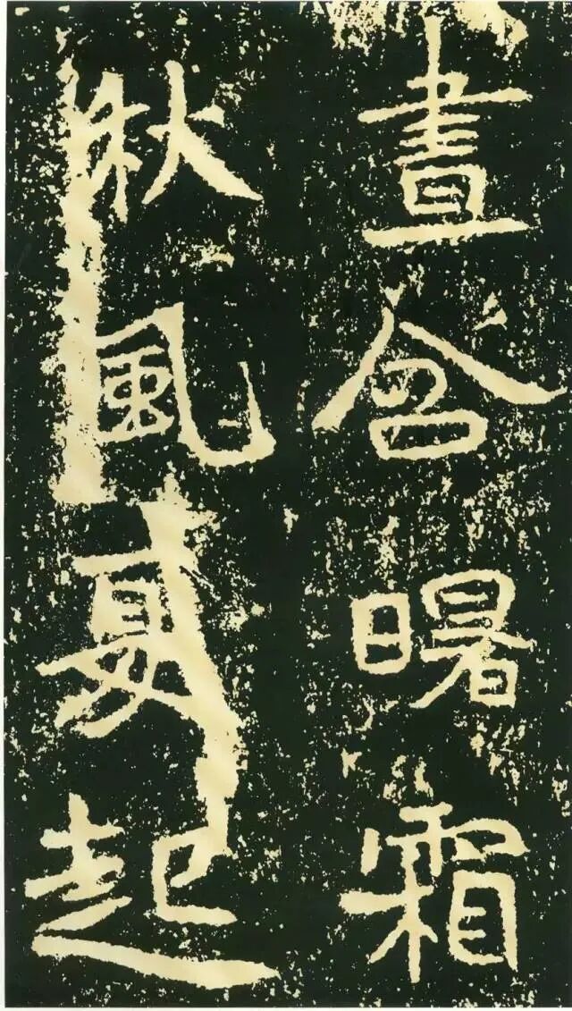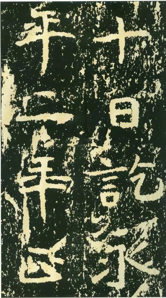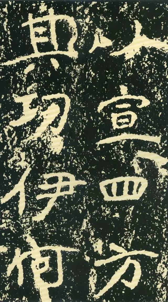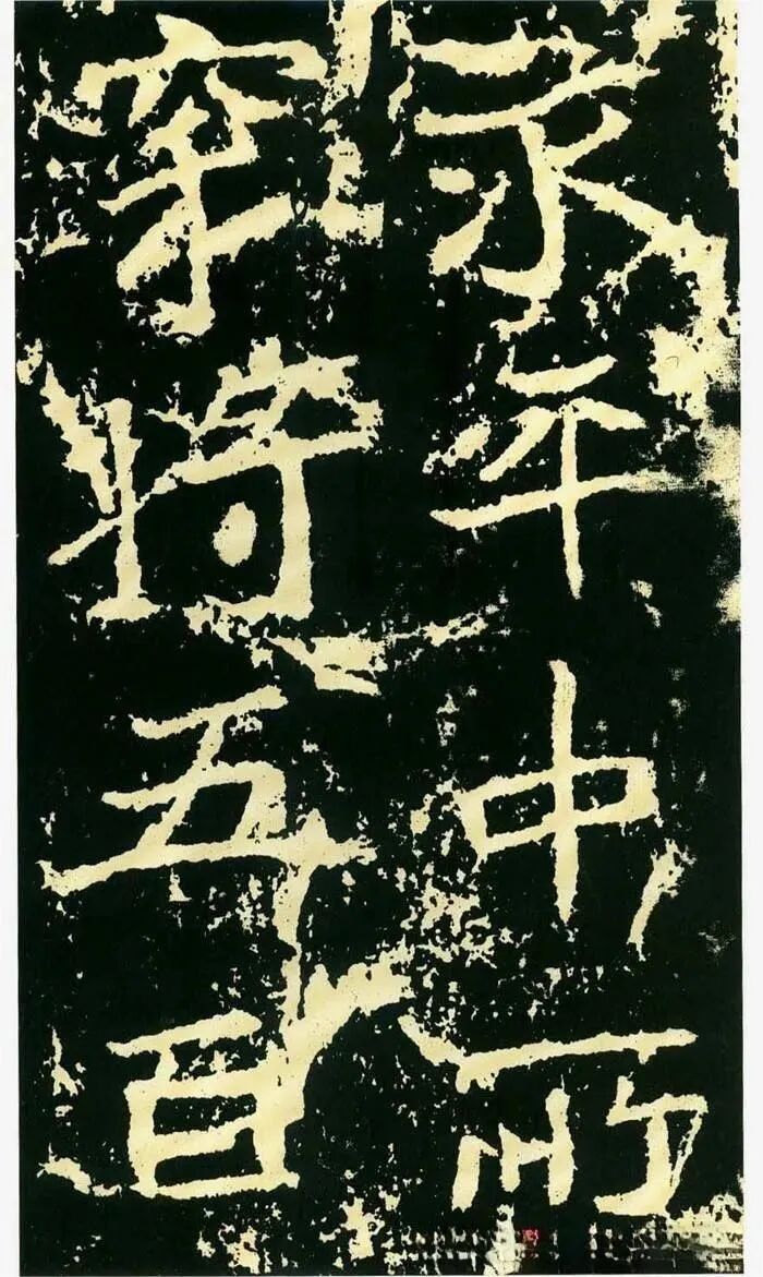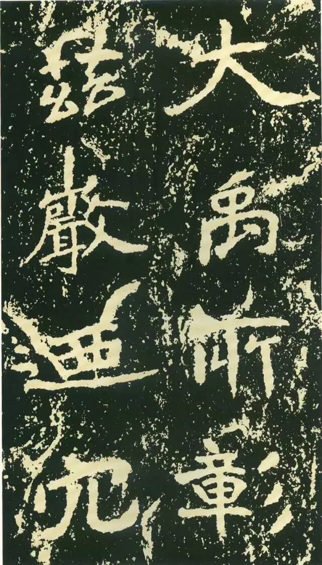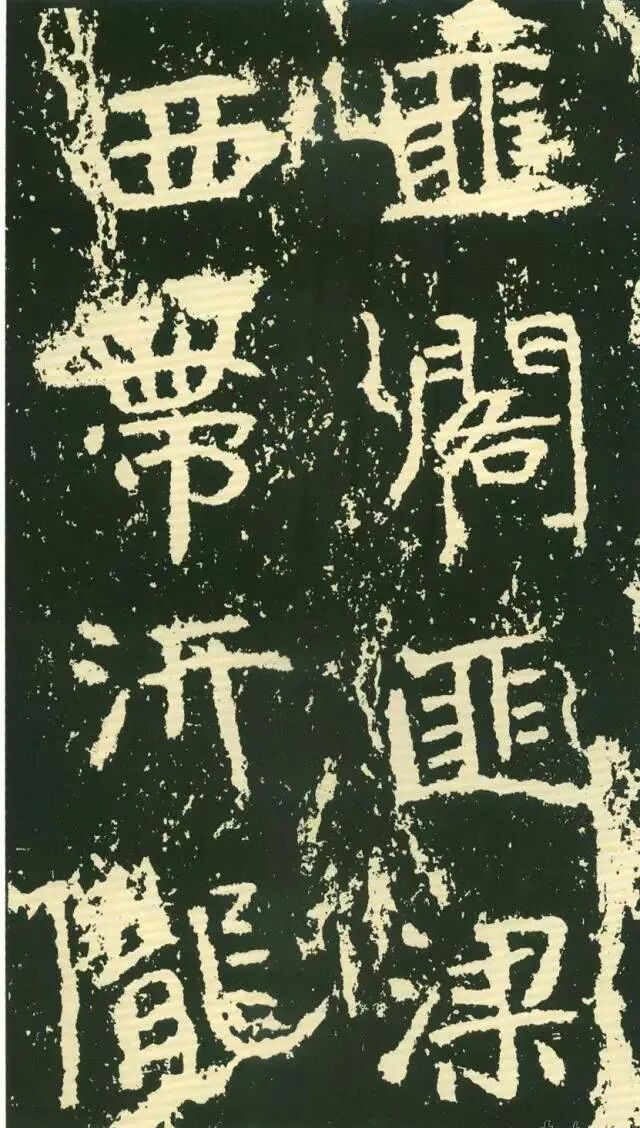作为摩崖书,《石门铭》较之一般造像、墓志等作品气势更加宏大,但其结字形态并非一味求大,也有极个别做“小”处理,这样就形成了极强的对比。如“献”字较大,而“公”字较小,由字形夸张而形成对比。有的则是由笔画的极力伸展夸张和极力缩短而形成对比,有的则是利用字的高矮来制造对比。