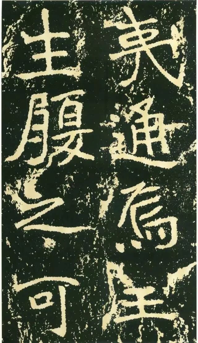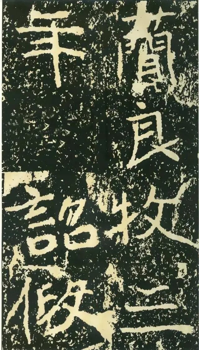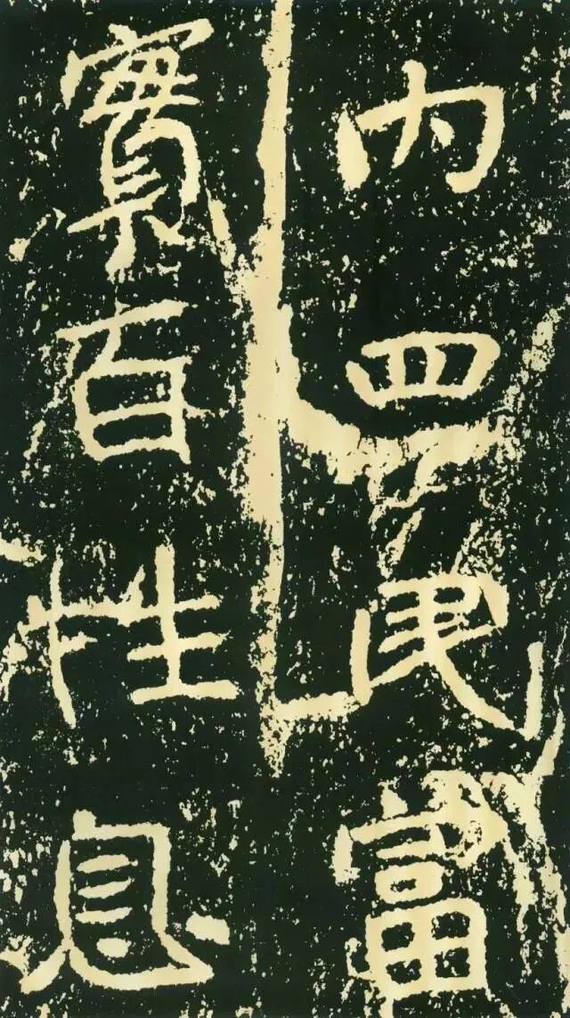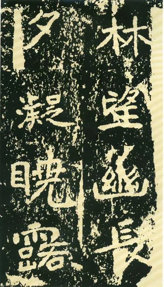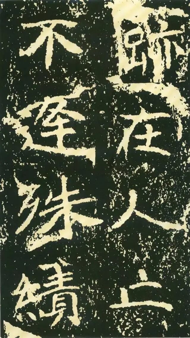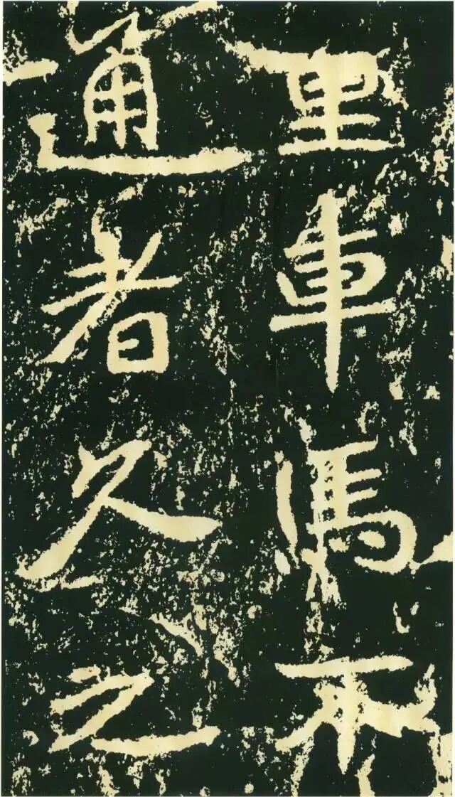 作为摩崖书,《石门铭》较之一般造像、墓志等作品气势更加宏大,但其结字形态并非一味求大,也有极个别做“小”处理,这样就形成了极强的对比。如“献”字较大,而“公”字较小,由字形夸张而形成对比。有的则是由笔画的极力伸展夸张和极力缩短而形成对比,有的则是利用字的高矮来制造对比。
