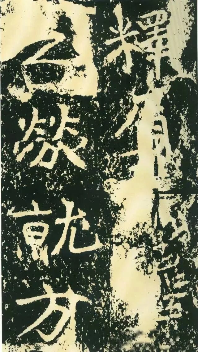 二、因字生形,意形相托。《石门铭》的很多结字一时有一时之态,不拘常调。如“方”字点画重入,横画一波三折,撇画很长,气势非凡。“成”字笔画有意处理得“松散”,使整个字变得很疏朗。“州”字形体本身很特殊,三部分大致相同,但此字自左至右逐渐向下倾斜,动感顿生。“仁”字单人旁稍向左倾,“二”部向右倾斜,左右两部分形成互动。“崄”字造型很别致,“山”部安放在左上部,力压千钧,却又稳稳当当。“途”字“余”部欹斜取势,“辶”恰如一叶小舟,上面一船夫正奋力划桨,乘风破浪,驶向远方。